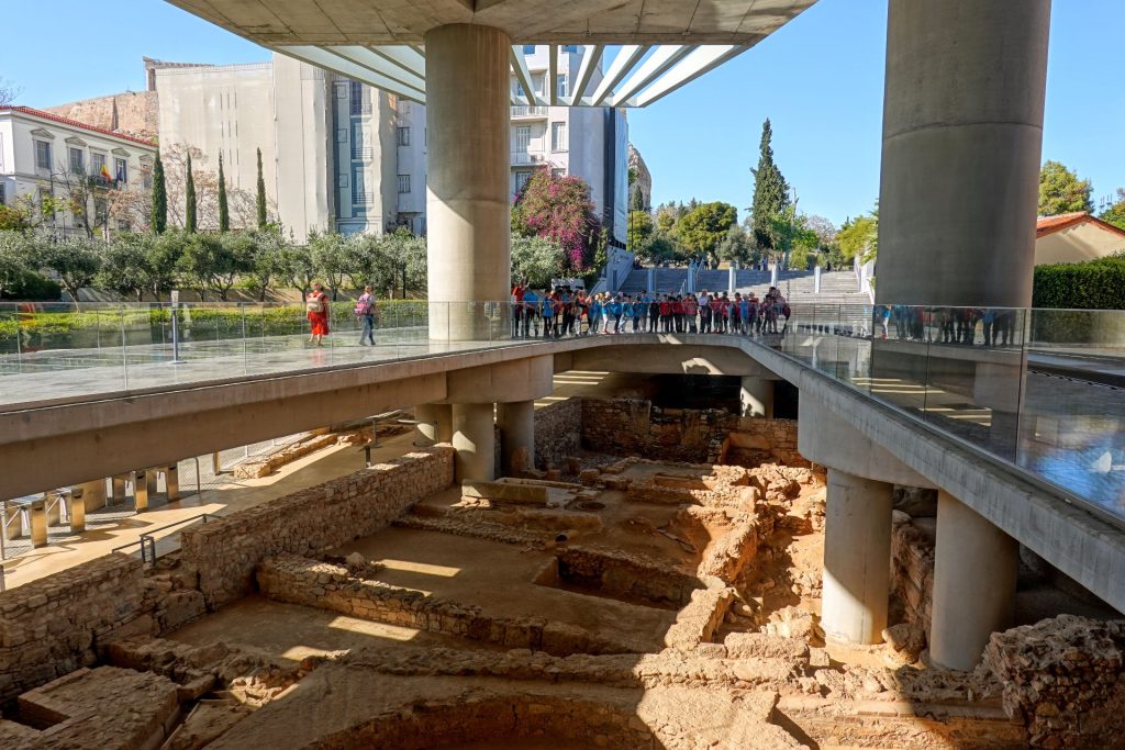 Arrivée aux alentours de 16h, le premier aperçu de la célèbre capitale Grecque après une heure de métro est pour le moins atypique, voire décevant. En effet, nous avons eu la chance de domicilier dans l’un des quartiers les plus malfamés de la cité. Ruines, tags, détritus abandonnés, citoyens dormant à même le sol, l’accueil laissera un sentiment de douche froide.