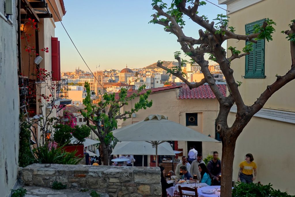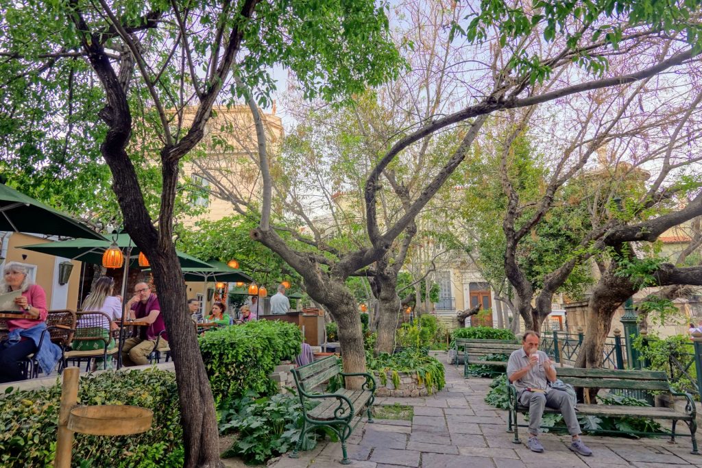 18h, nouvelle déambulation dans les rues de Plaka, quartier pittoresque de la capitale. Très agréable et très mignon. Oui c’est vrai, une des rares places ou se trouve de la verdure.