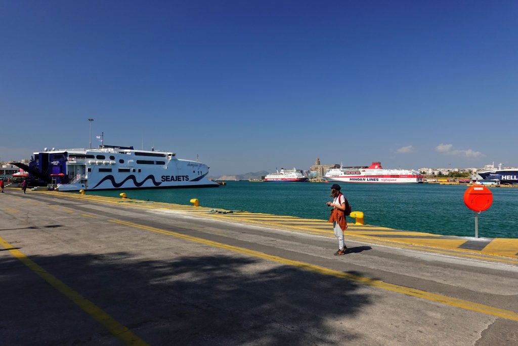Nous commençons cette journée chargée par la visite du Pyrée, ZEU port d’Athènes. Pas de petits bateaux rigolos, juste du gros modèle. Du lourd. Du costaud. Malgré l’apparente proximité avec la Mer, le lieu reste densément peuplé, sans plage, et extrêmement bruyant.